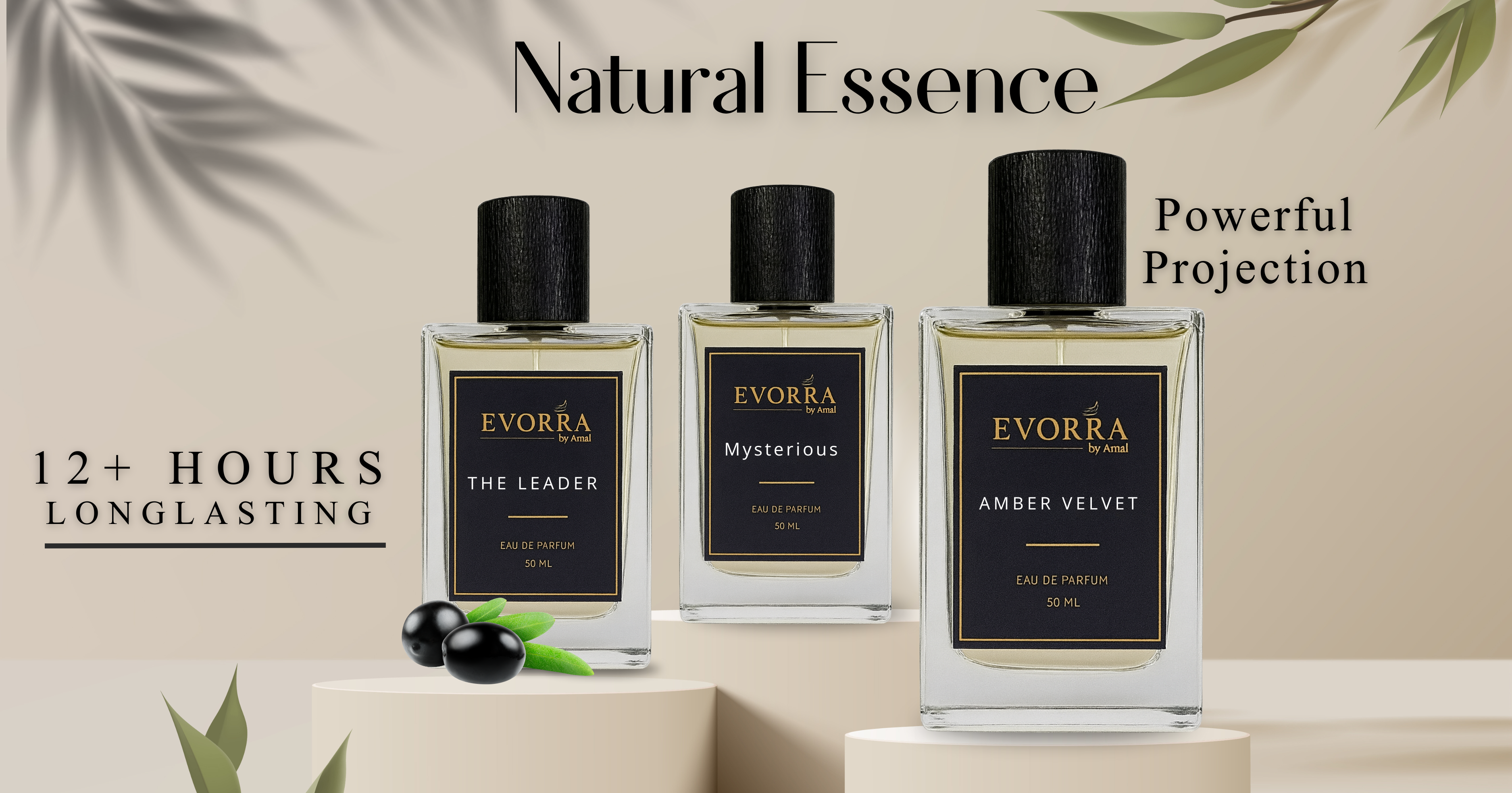 EVORRA by Amal perfumes are made with premium oils and rich ingredients, crafted for Pakistan’s weather. Each scent is bold, long-lasting, and leaves a refined, luxurious impression.
