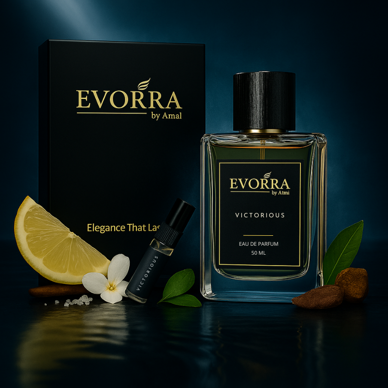 Victorious is a bold, refreshing fragrance that embodies power and success. It opens with vibrant grapefruit and marine notes, blends into jasmine and laurel, and finishes with ambergris, patchouli, and oak moss — confident, fresh, and long-lasting.